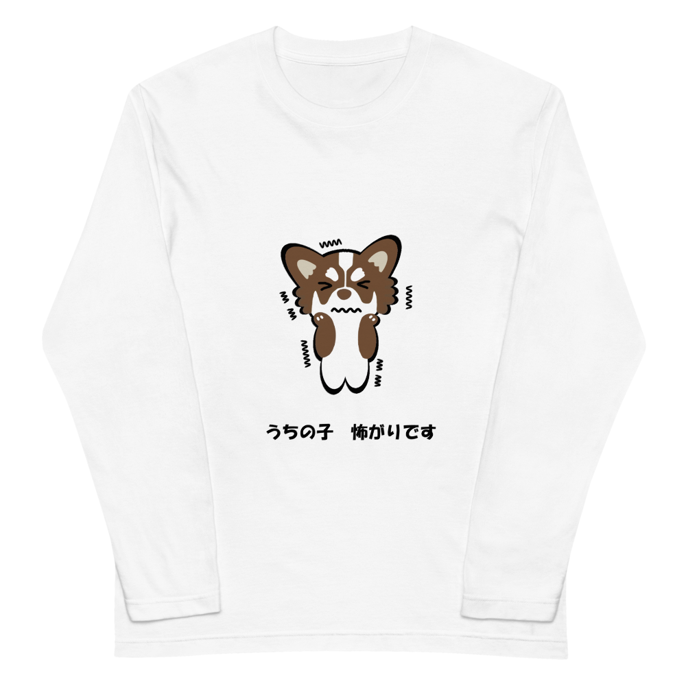 【うちの子 怖がりです】ユニセックス長袖Tシャツ(ホワイト)